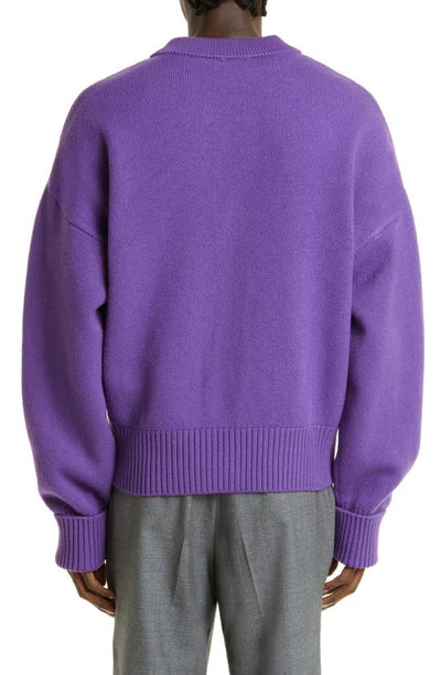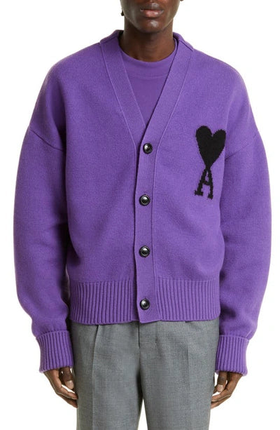 AMI PARIS PURPLE EMBROIDERED CARDIGAN