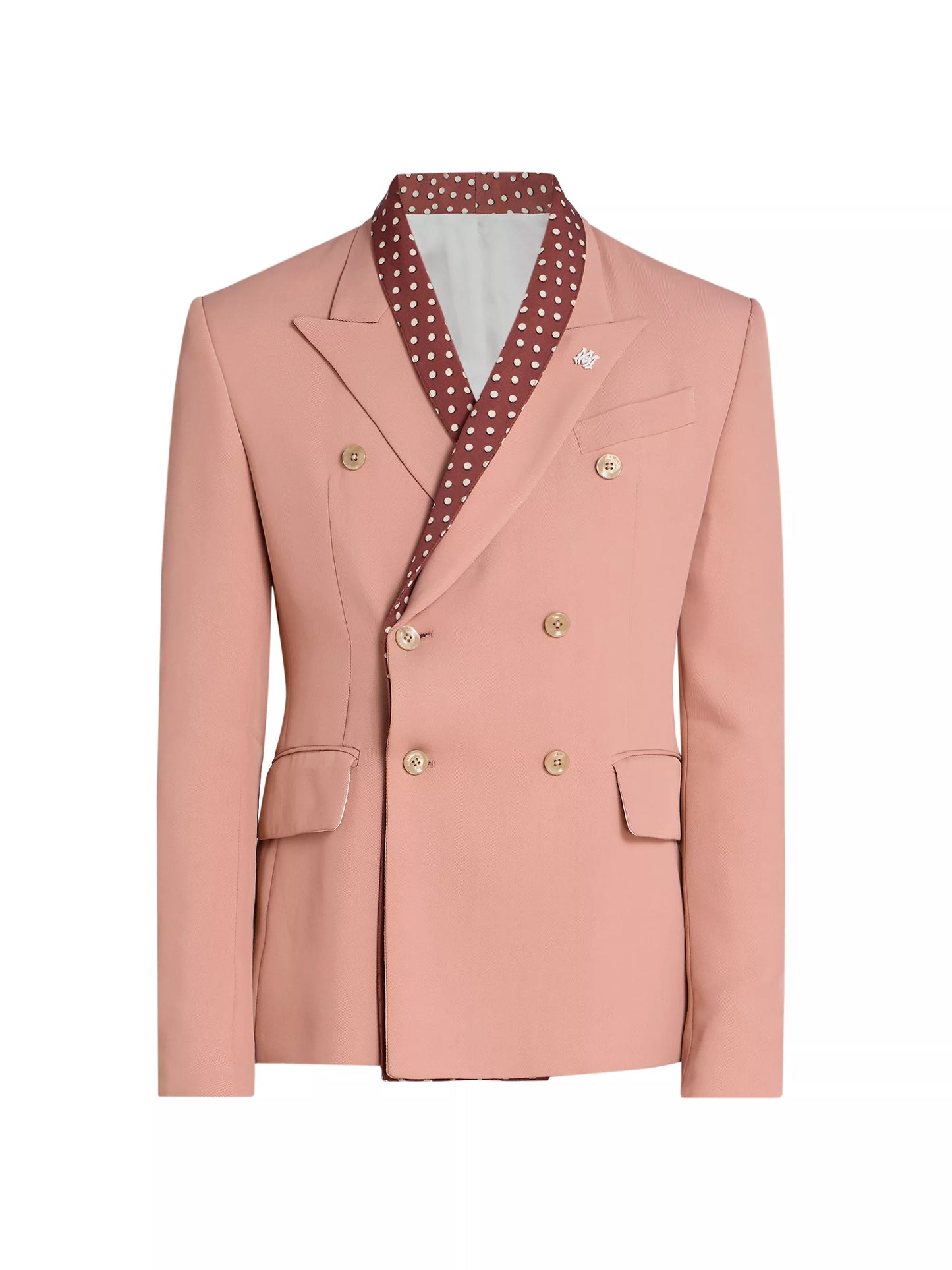 A staple piece for any style star, this double breasted Amiri jacket in pastel blue is perfect for the office, weddings, and more.