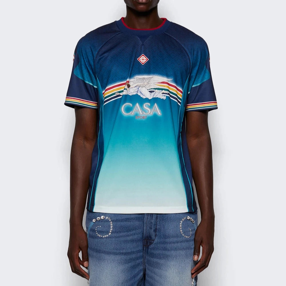 Former collaborator of the iconic Virgil Abloh, Casablanca's Charaf Tajer is known for references to his French-Moroccan heritage blended with a contemporary, sporty attitude.