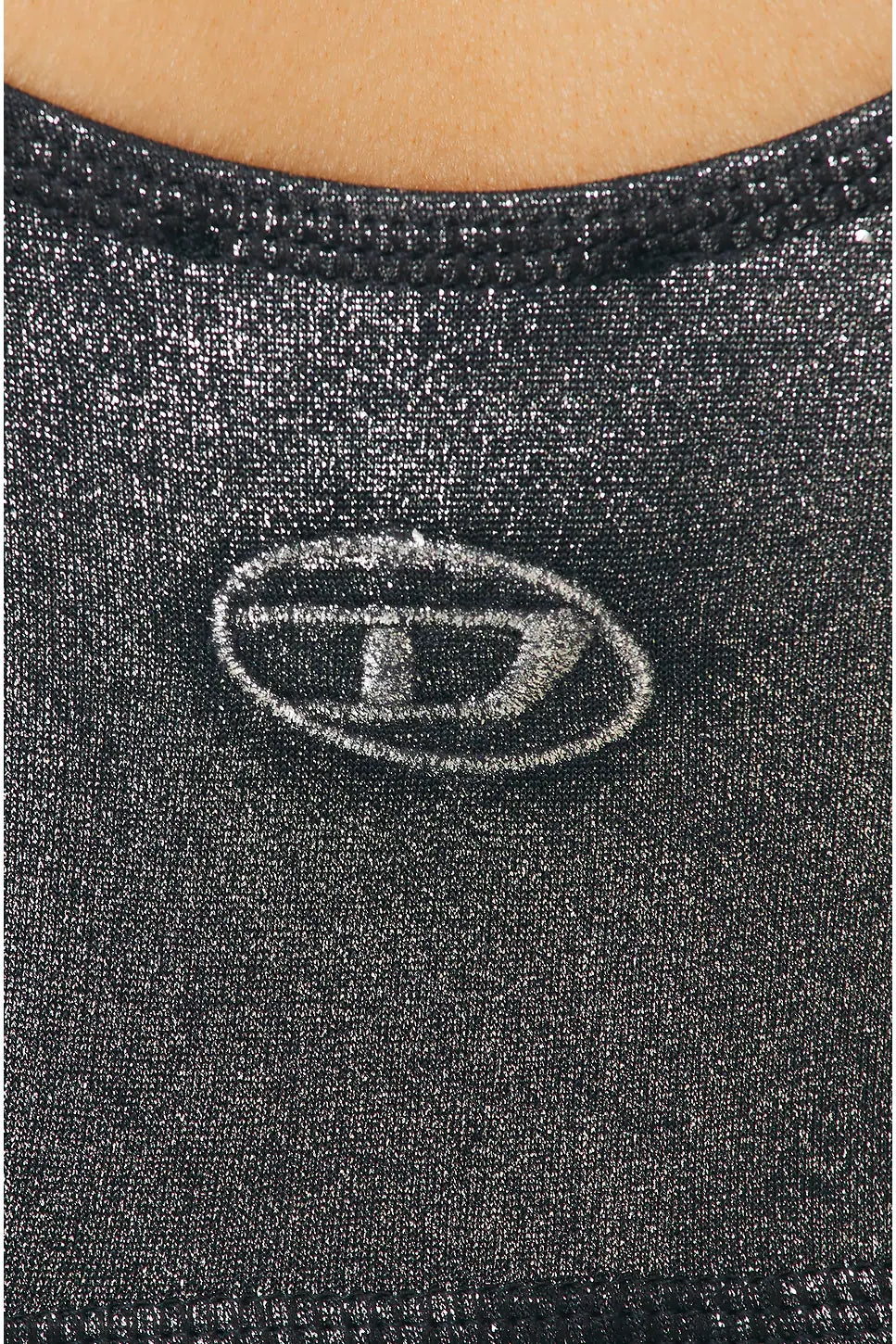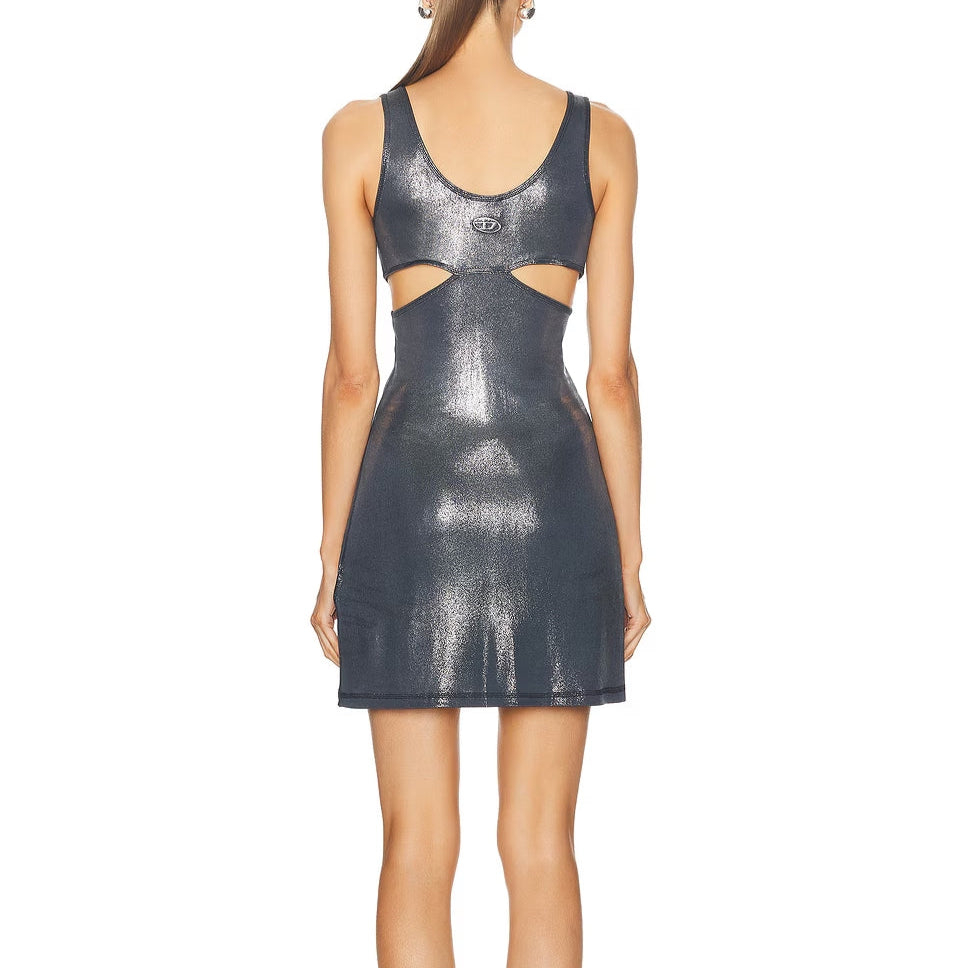 This Diesel metallic mini dress featuring the Diesel D logo detail is great for date night or a night out with the girls.
