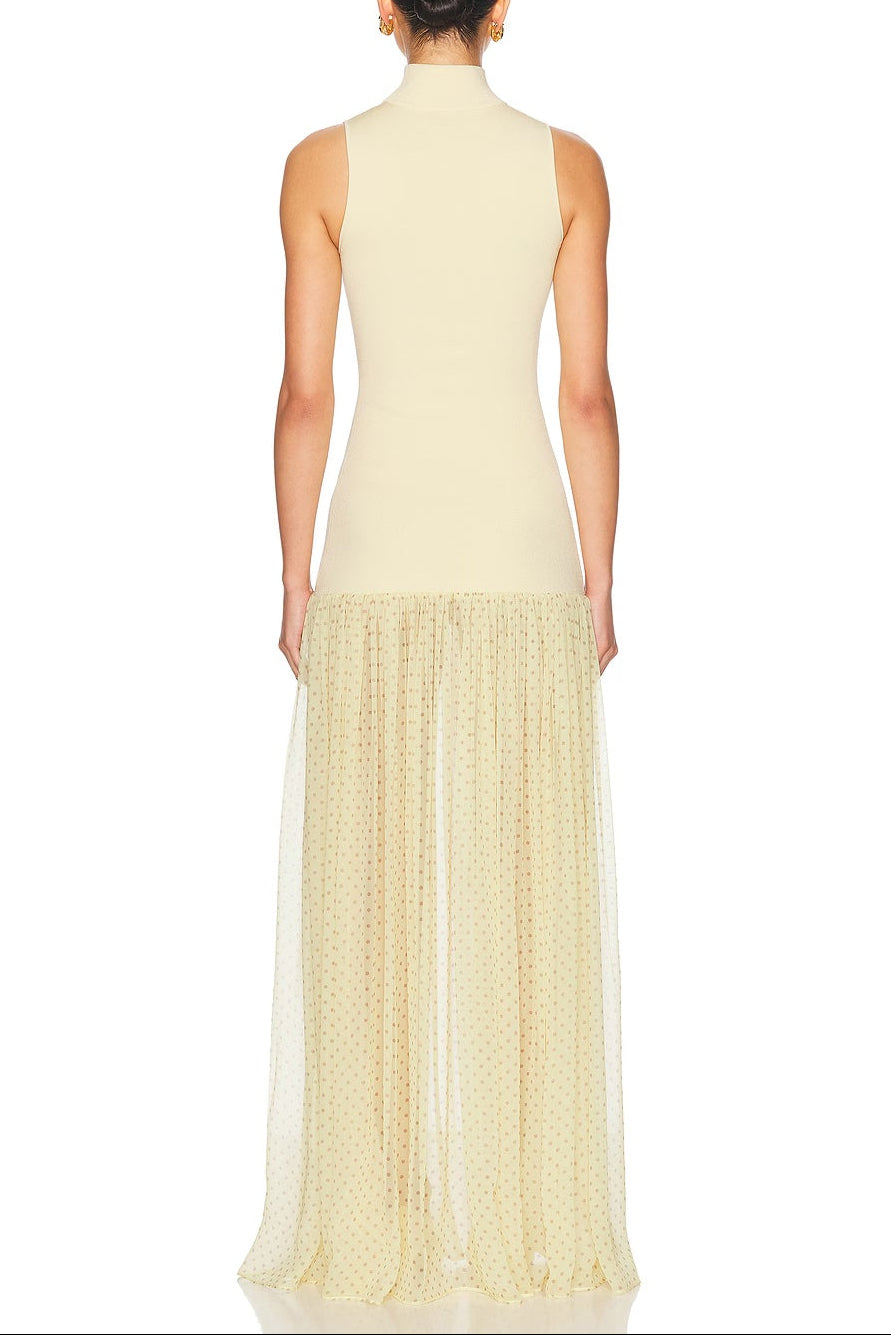 An elegant, understated statement from Helsa. The Costanza Gown features a fluid, floor-length silhouette in a soft butter yellow hue that feels both modern and timeless. Designed with clean lines and a minimalist cut, this gown drapes effortlessly for a refined, elongated look.