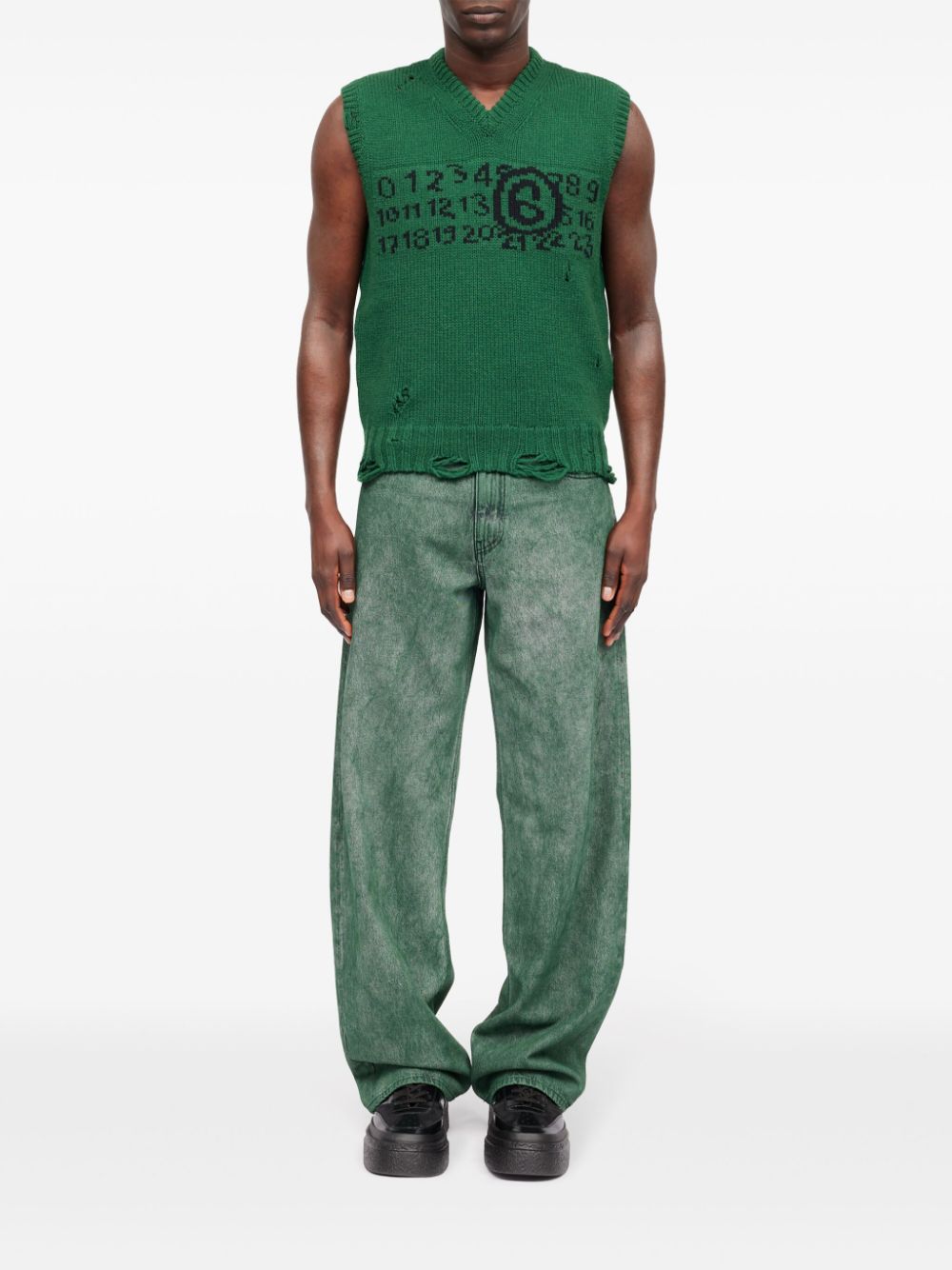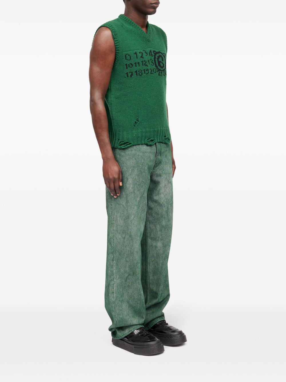 MM6 MAISON MARGIELA NUMBERS EMBROIDERED VNECK SWEATER