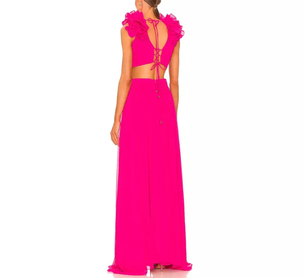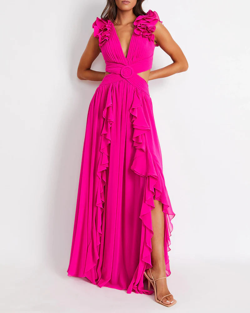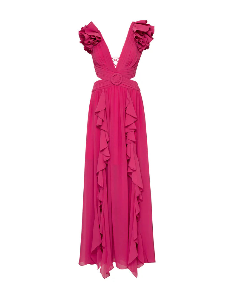 PATBO FLUTTER SLEEVE RUFFLE GOWN