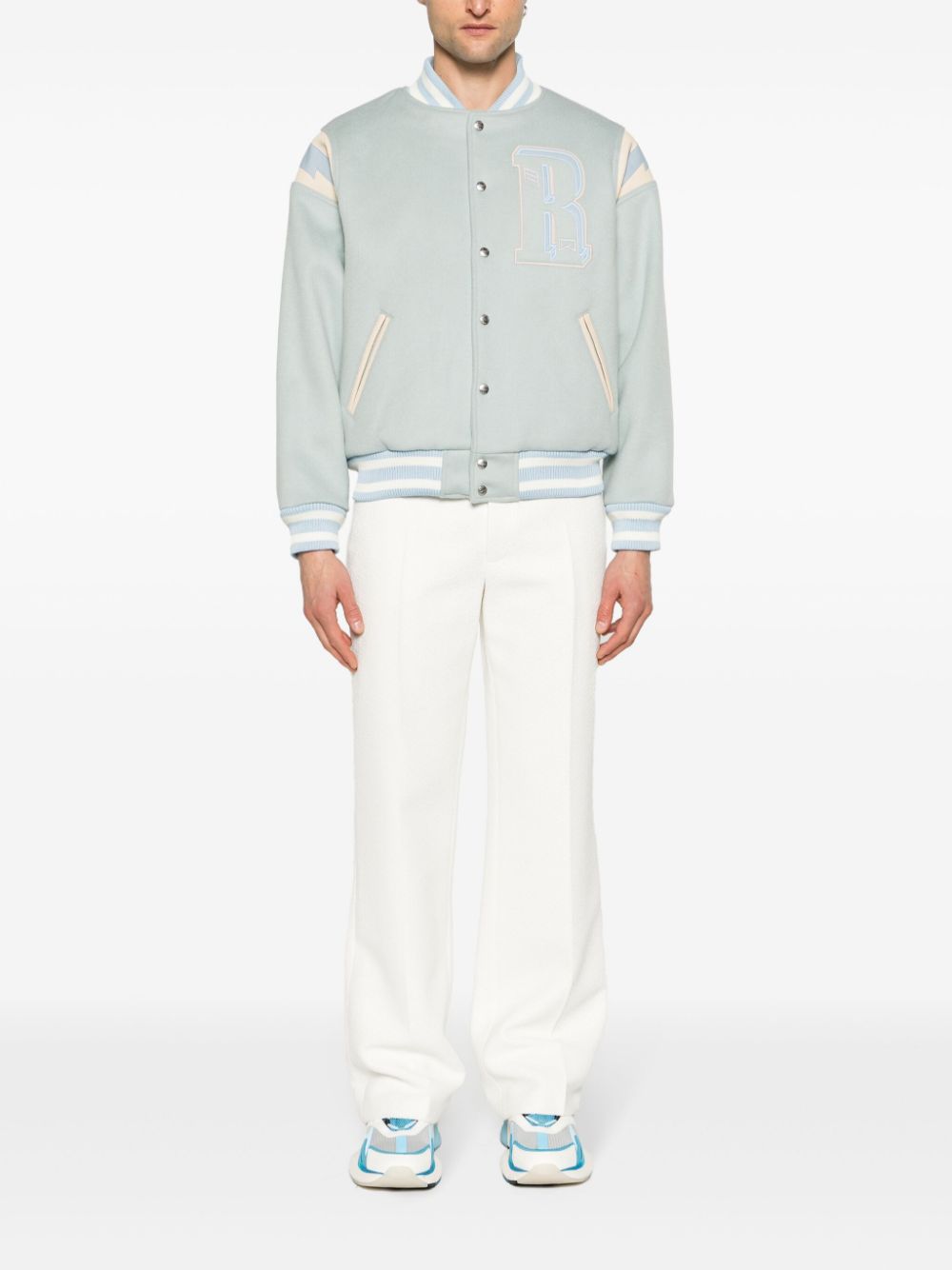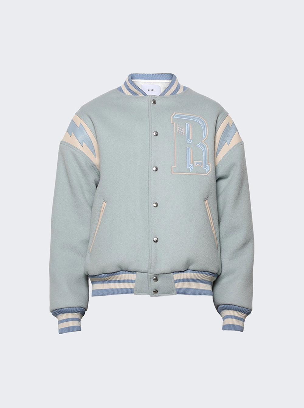 This wool bomber jacket from Rhude with jacquard detail puts a unique spin on class schoolboy look.