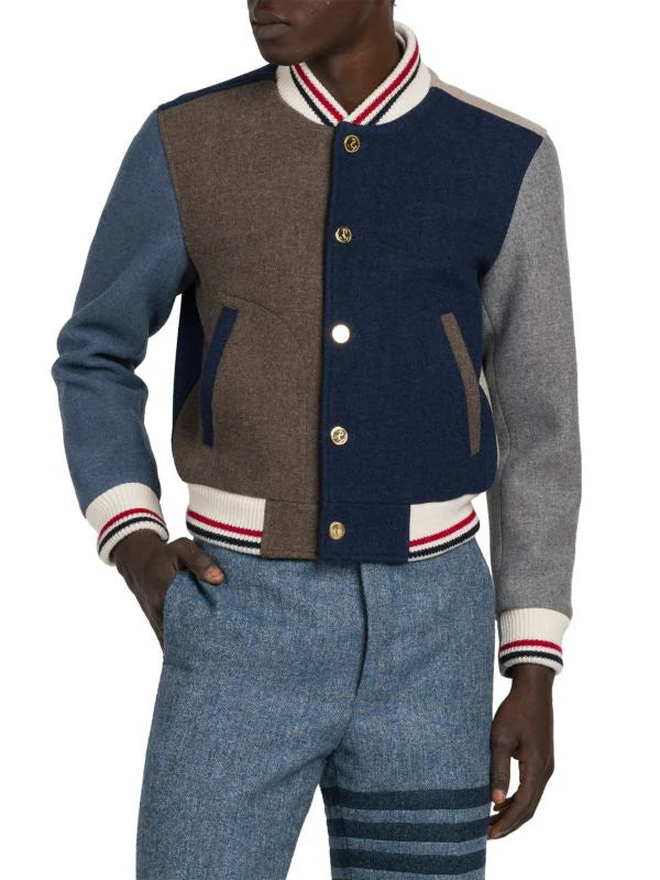 THOM BROWNE COLORBLOCK WOOL VARSITY JACKET