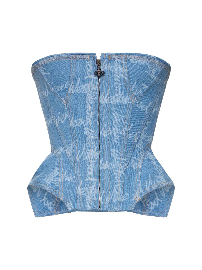 This Vivienne Westwood denim corset is the right statement piece to elevate any look.